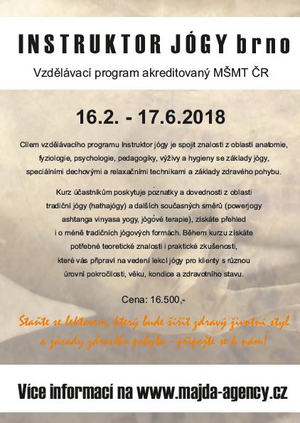 18.01.2018 09:00Vzdělávací program akreditovaný MŠMT - INSTRUKTOR JÓGY
